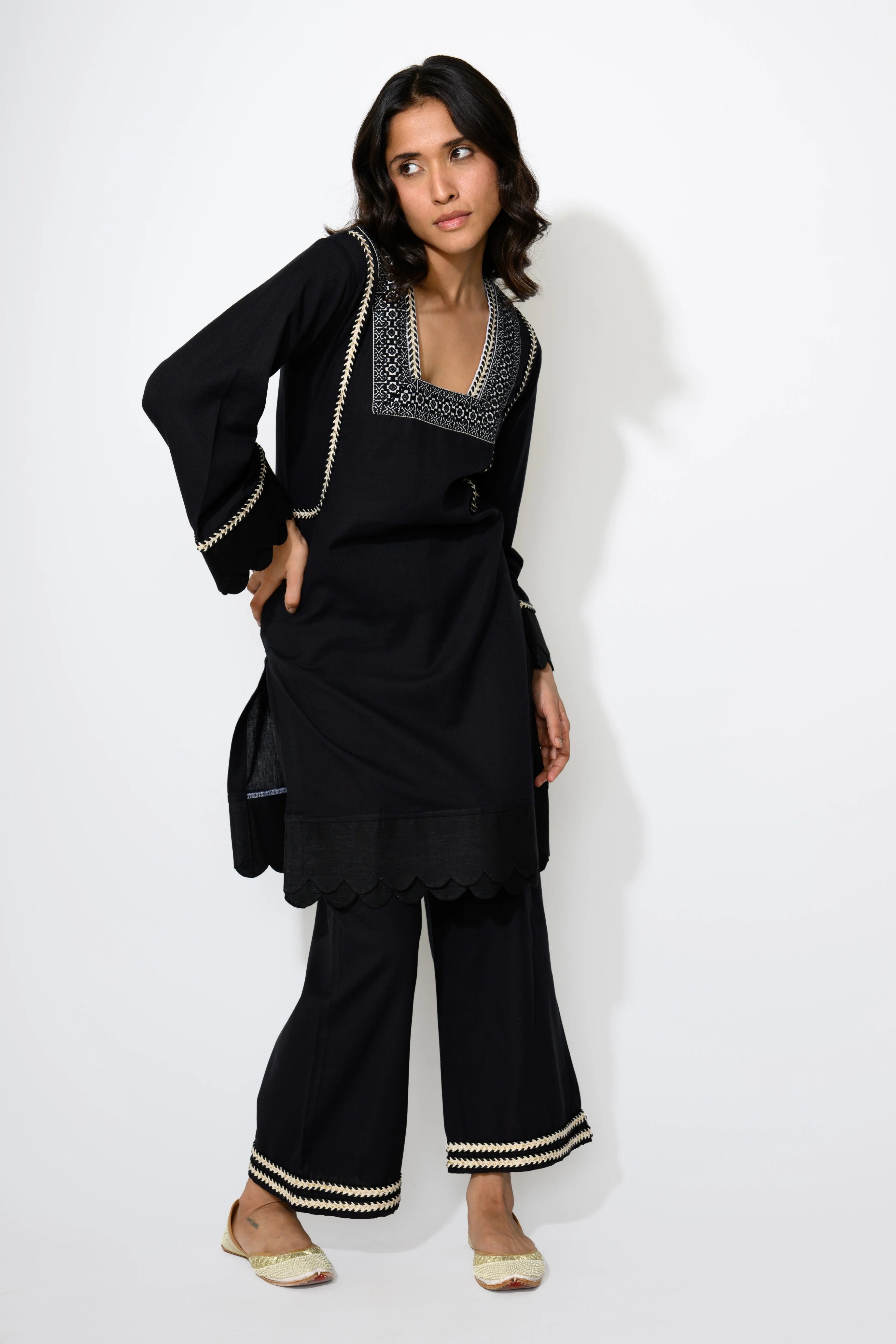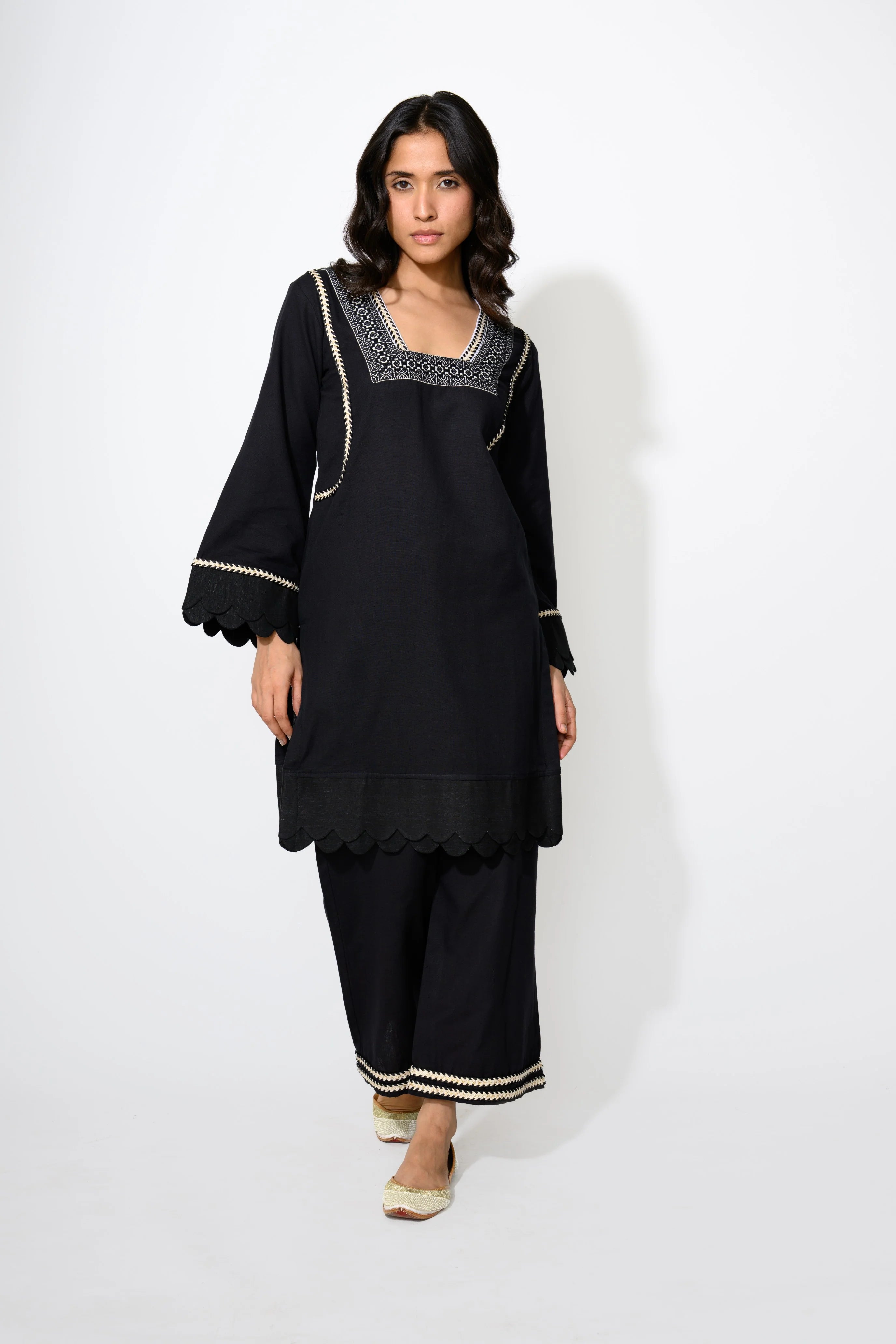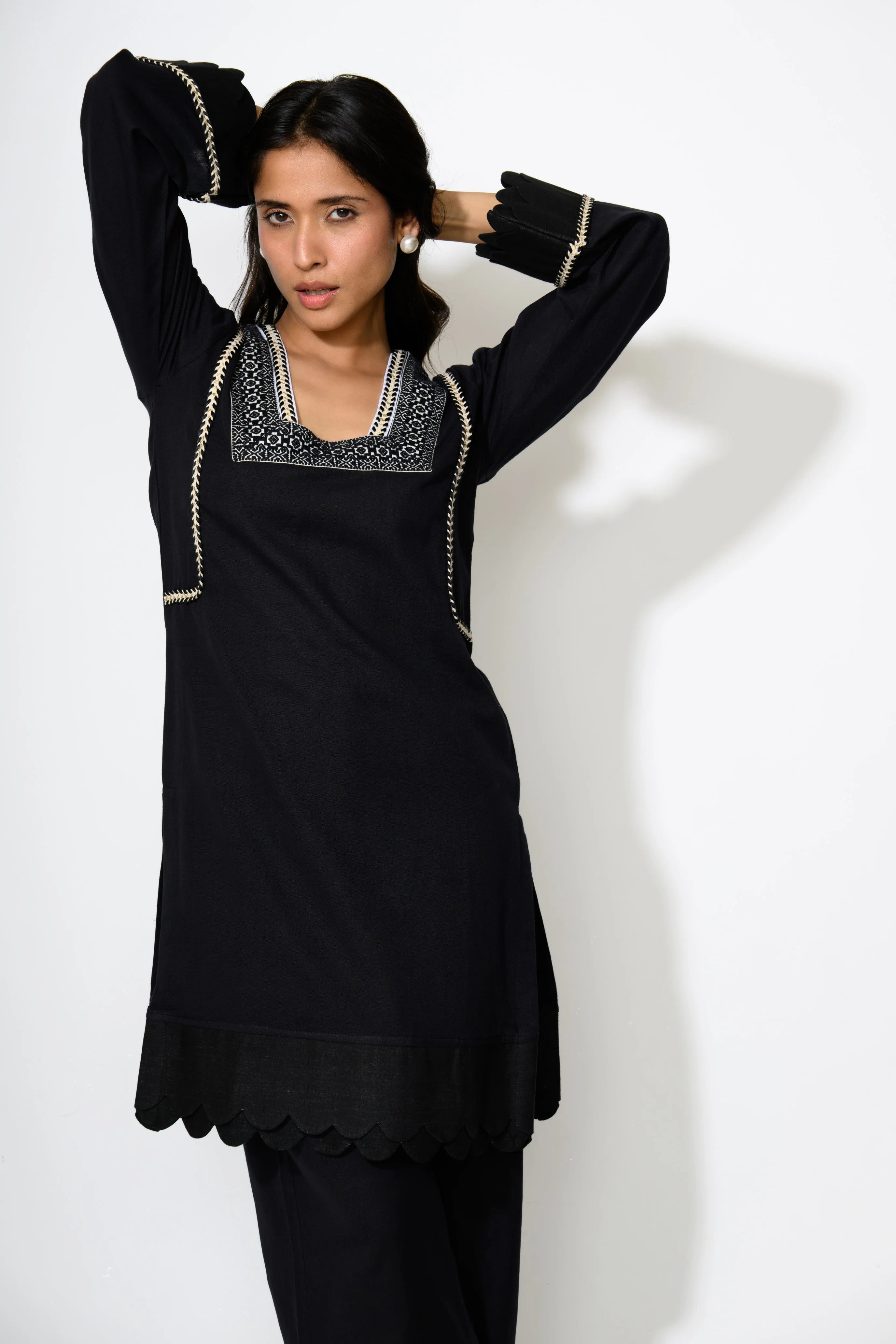 Sleek and understated, this black ensemble speaks volumes with minimal effort. The clean lines and versatile shape make it a wardrobe essential for both day and night. It's an ideal choice for those who favor monochrome magic with a modern twist!