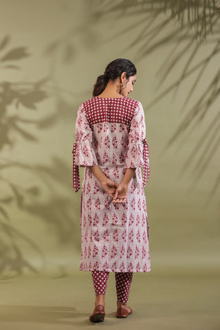 Pink, Hand Block Printed With Patch Work Kota Doria & Cotton Suit Set