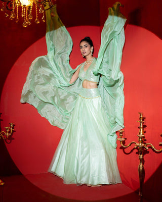Tonal Sequin Embroidered Lehenga with Cape Style Dupatta