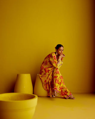 Crushed Silk Indo-Western Kaftan with Harem Silk Pants