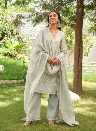 Autumn Ember Velvet Suit with Scalloped Tissue Dupatta