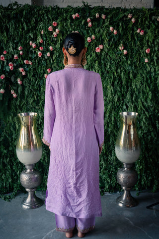 Crushed Silk Kurta with Embroidery and Farshi with Gota Detailing