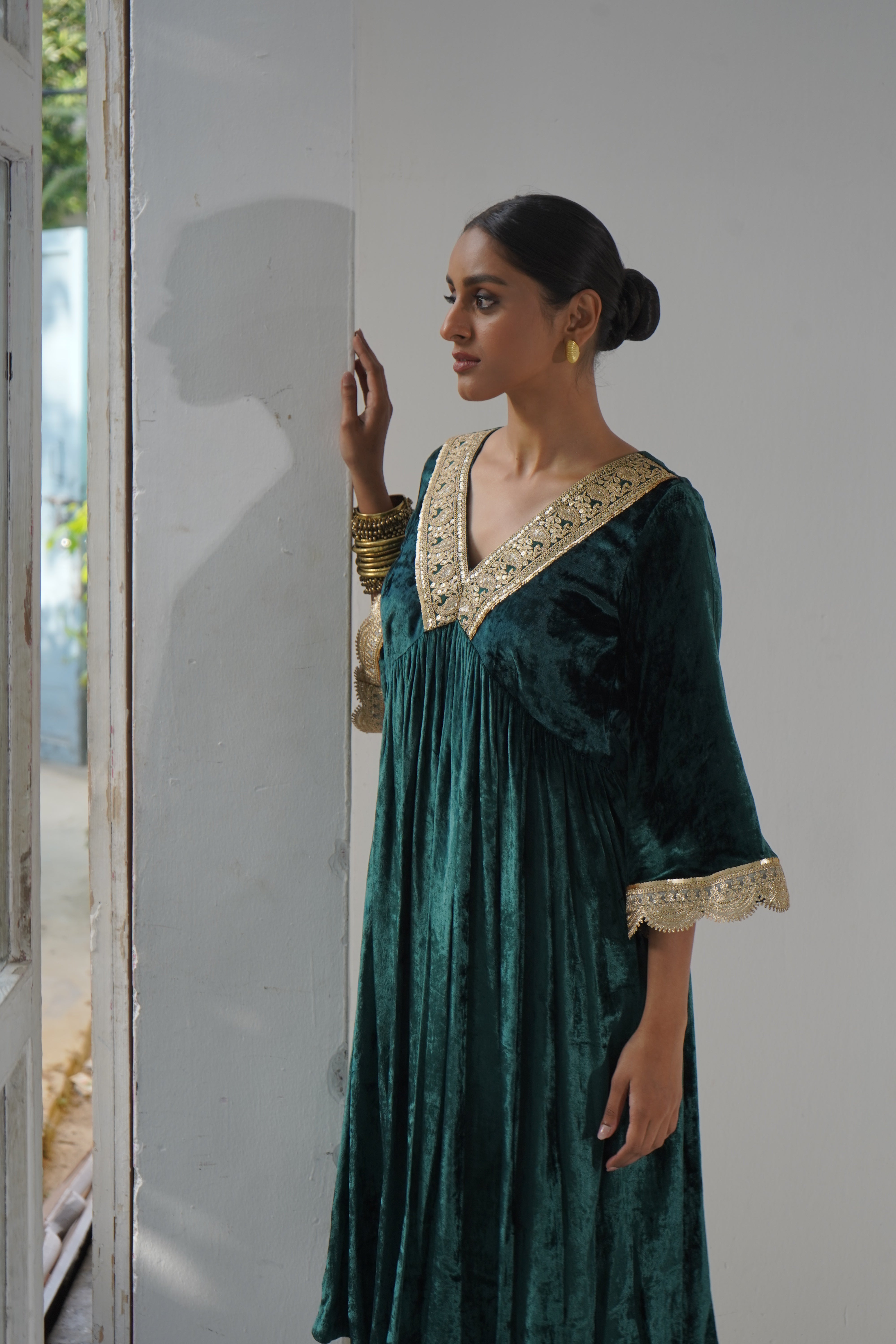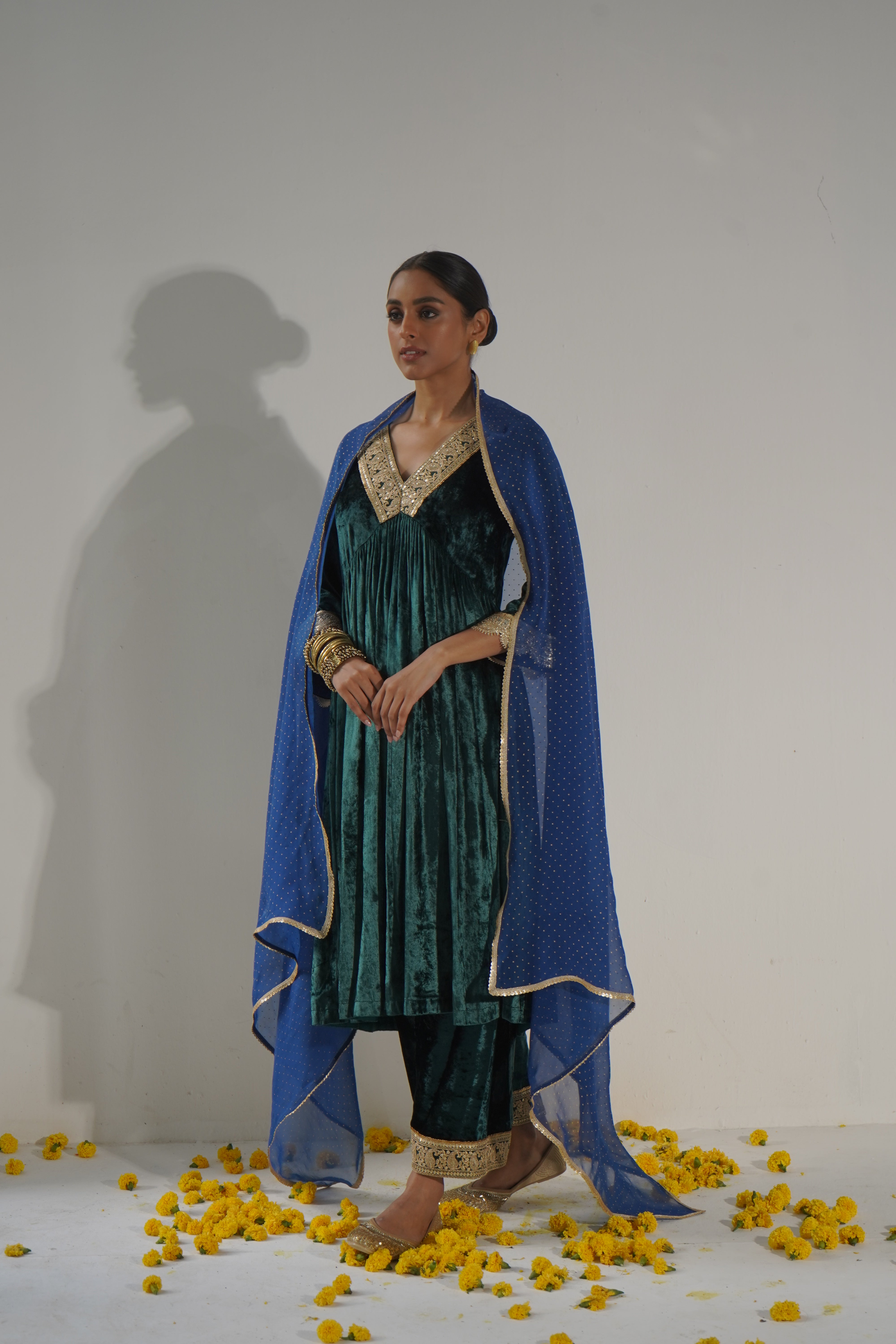 Embroidery: Paisley-designed zari work adorns the cuffs of the kurta and pants as well as the collar