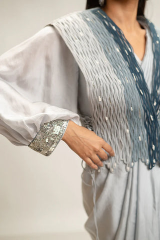 Silver Tonal Embroidered Drape Saree