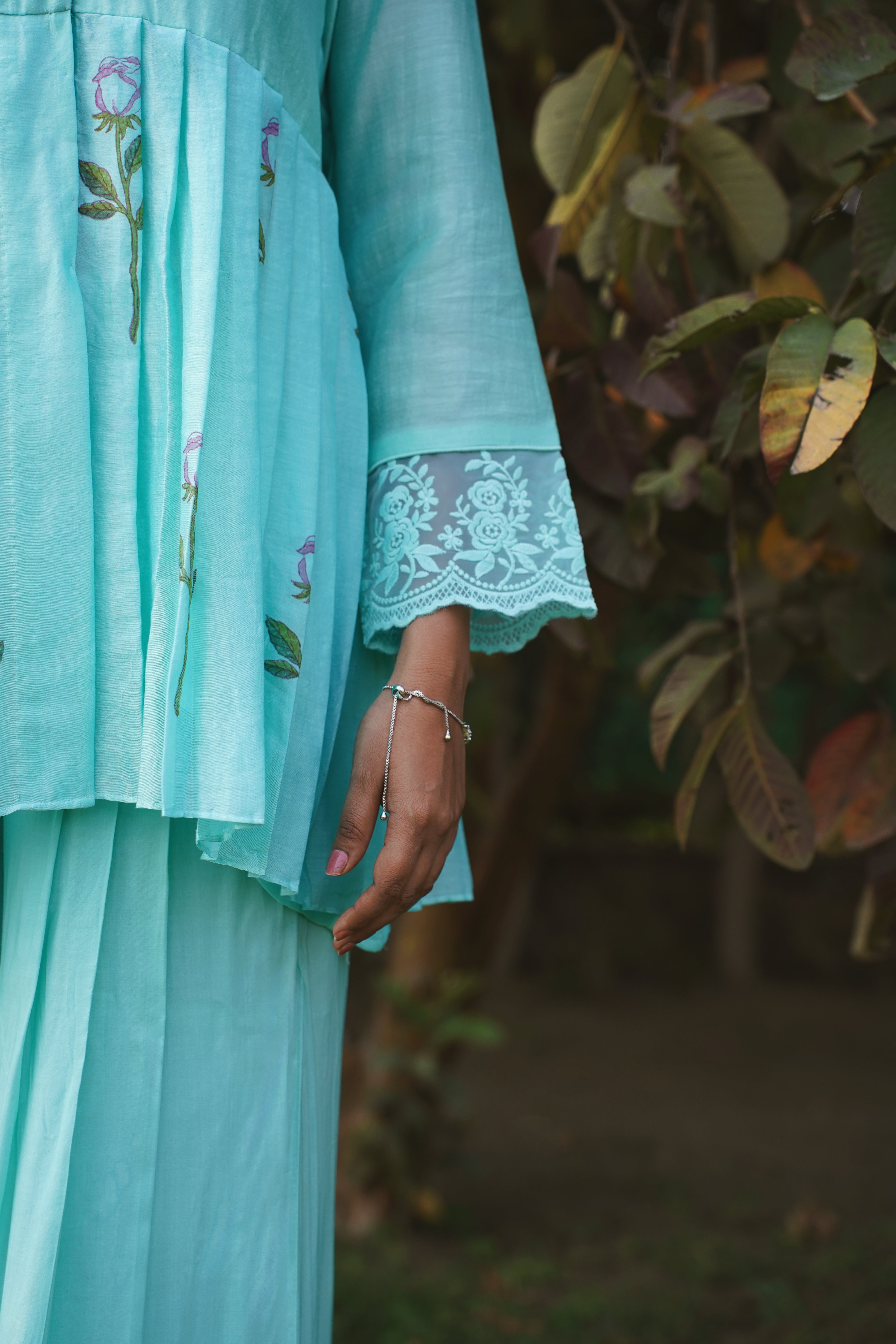 - Silhouette: A kaftan inspired top with a relaxed fit makes the outfit sway gracefully with every step