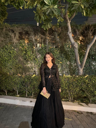 Leather & Multi Resham Embroidered Peplum Top & Sharara Set