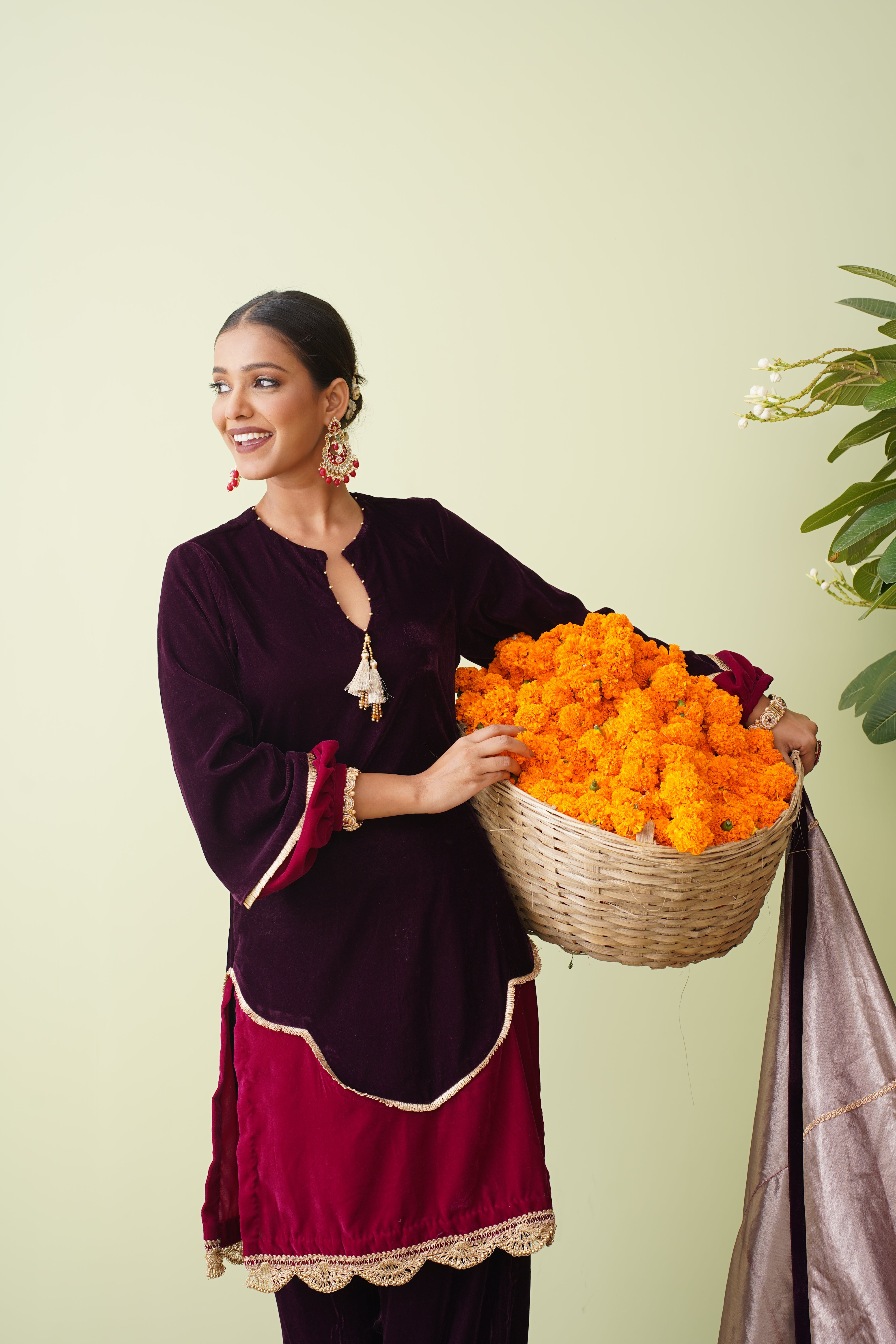 A blend of subtle hues and soft textures, this dual-tone kurta set, paired with a flowing tissue dupatta, celebrates the beauty of effortless sophistication. Some of its key features are:
